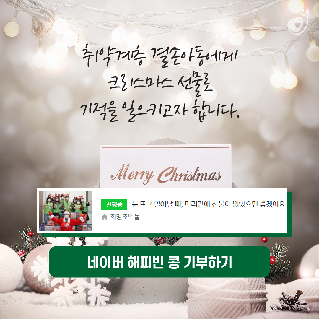 희망조약돌에서 진행하는 네이버 해피빈 모금함,