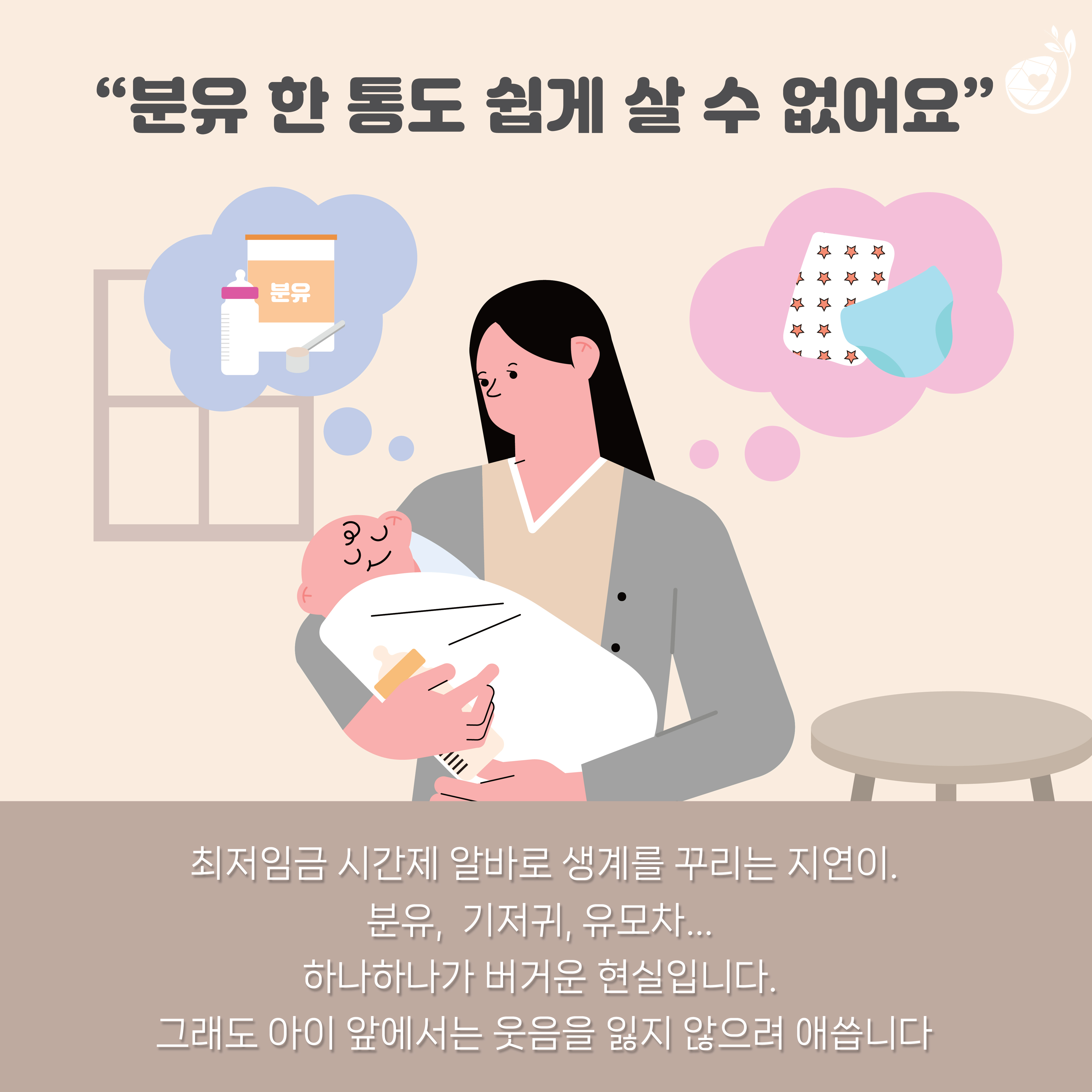 “분유 한 통, 기저귀 한 팩도 부담스러워요.”