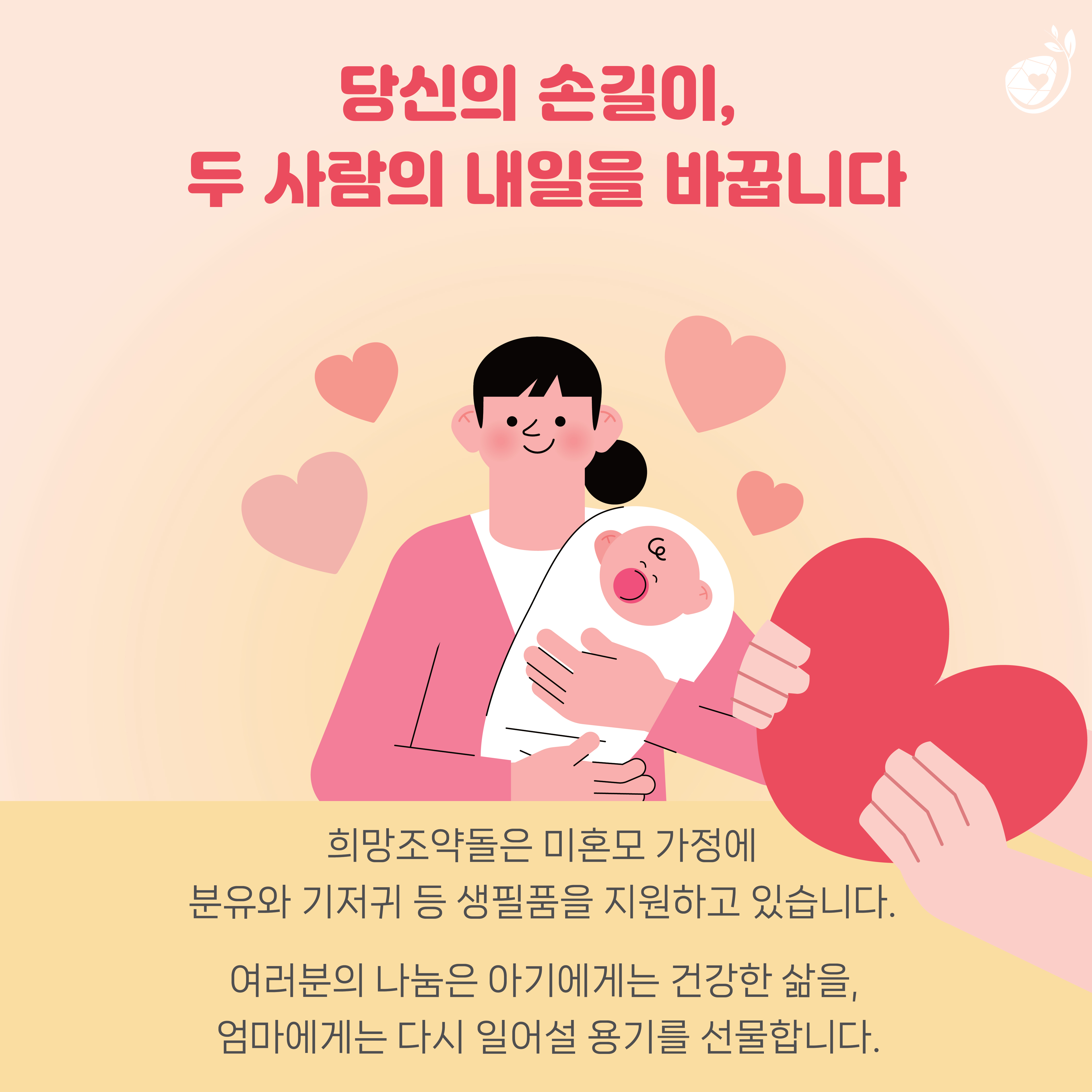 희망조약돌은 지연이와 같은 미혼모 가정을 위해