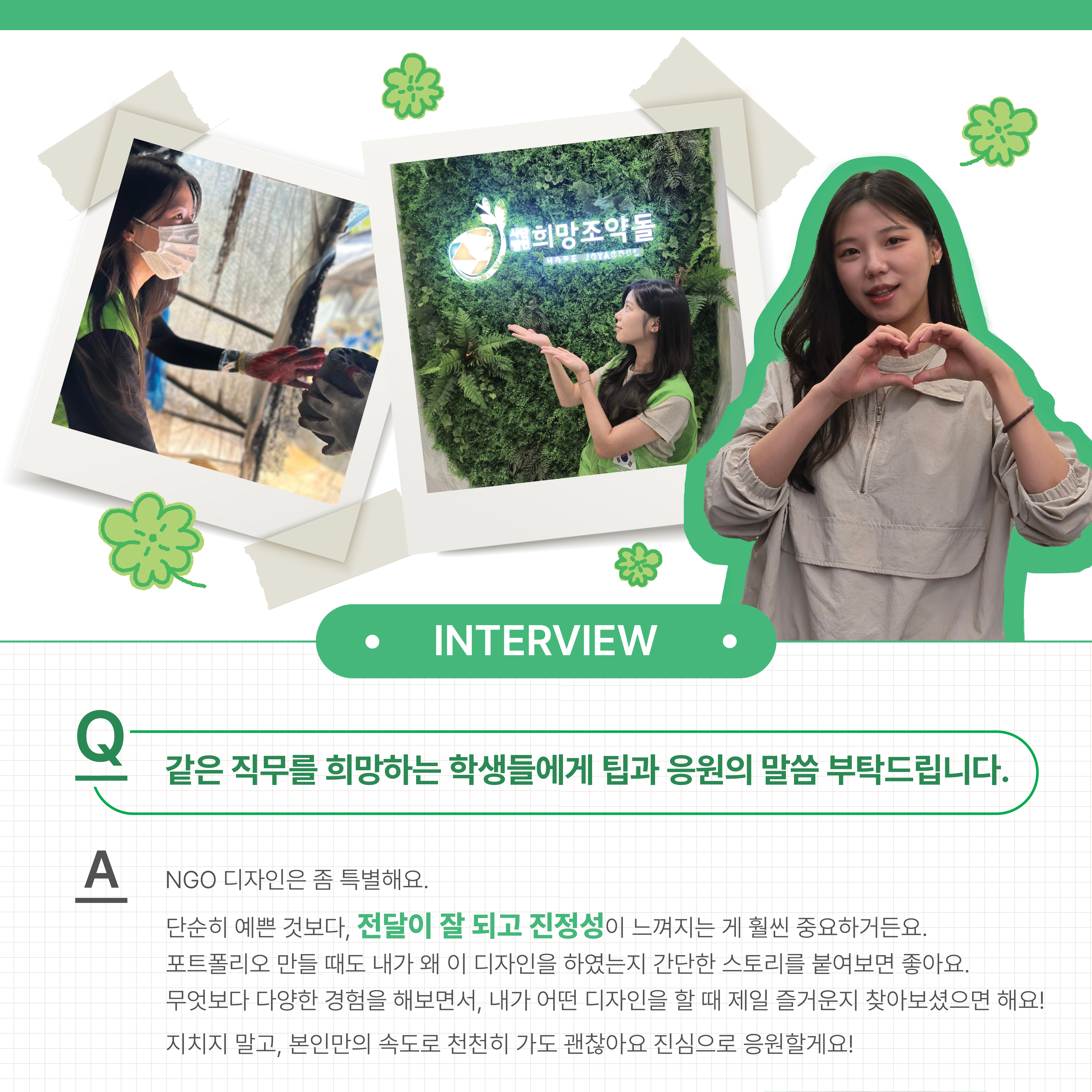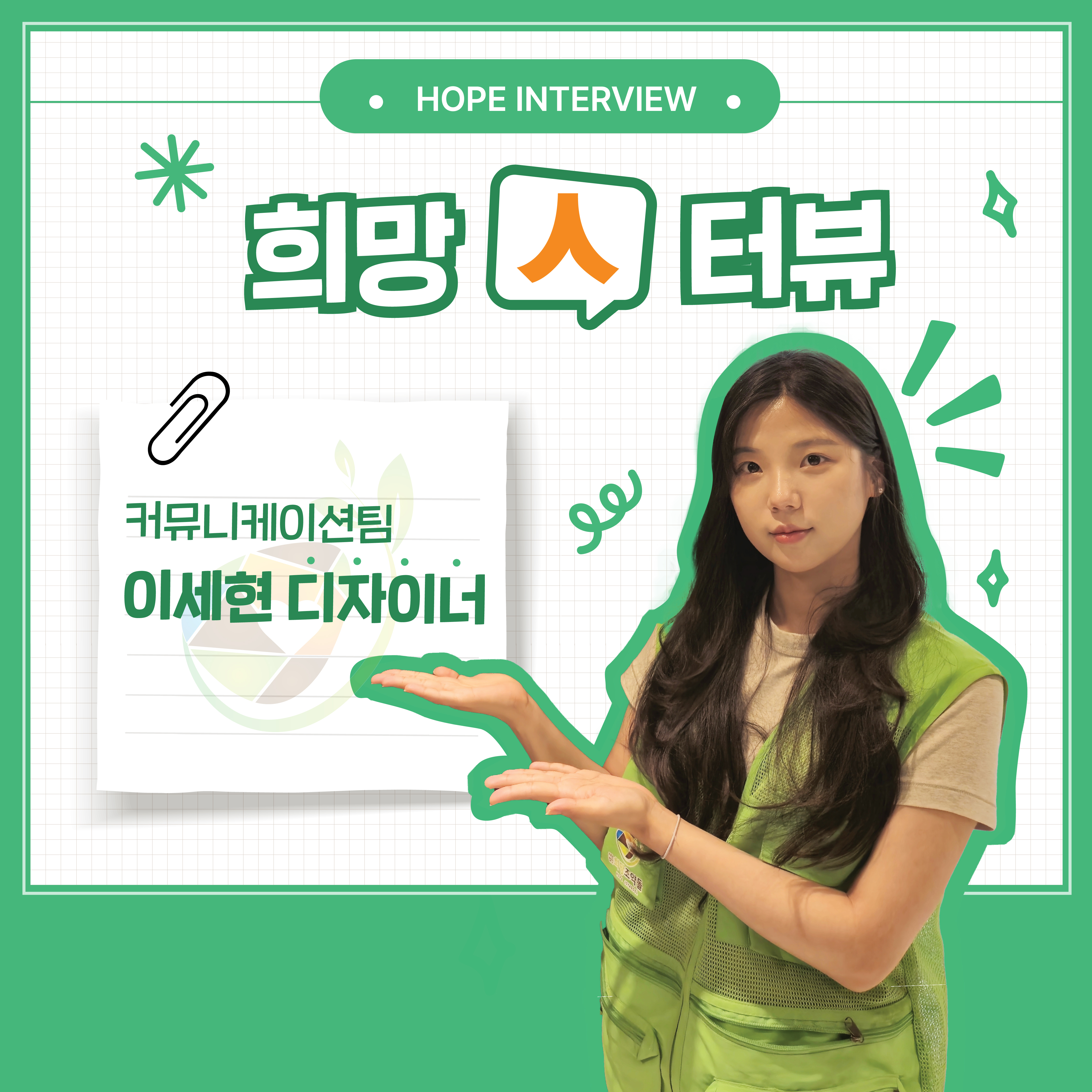 안녕하세요. 희망조약돌 커뮤니케이션팀에서 디자인 업무를 맡고 있는 이세현 디자이너입니다.