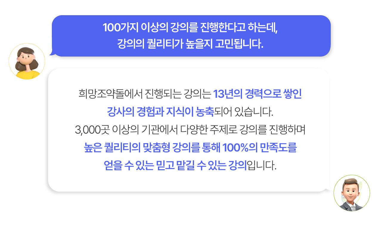 담당자 상담 원하는 강의 내용 및 프로그램에 맞춰 강의 구성
