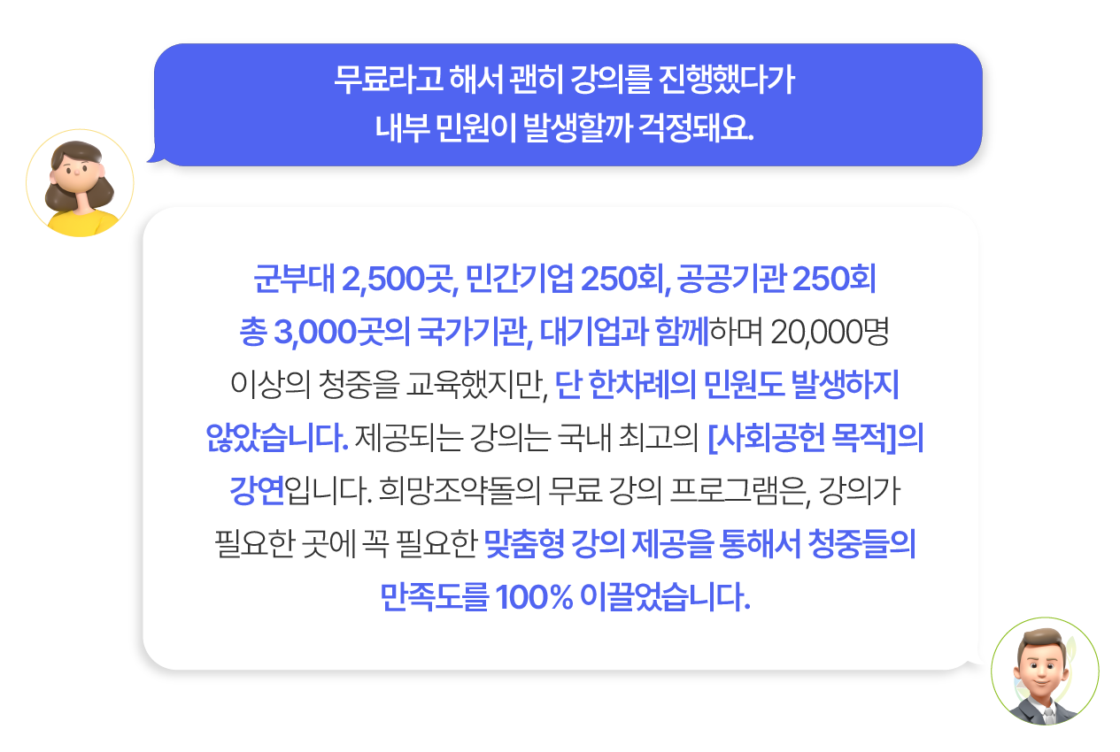 대기업과 함께하며 20,000명 이상의 청중을 교육했지만, 단 한차례의 민원도