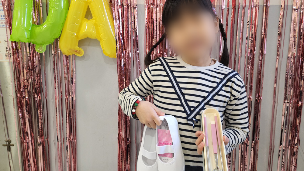 오늘 몽땅 기부 후원자님께서 선물해주신 새 실내화, 새 수저세트를 전달해 주었는데 입학선물을 또 받는다며 함박웃음을 지어보이는 아이들의 모습을 보니 함께 행복해집니다.