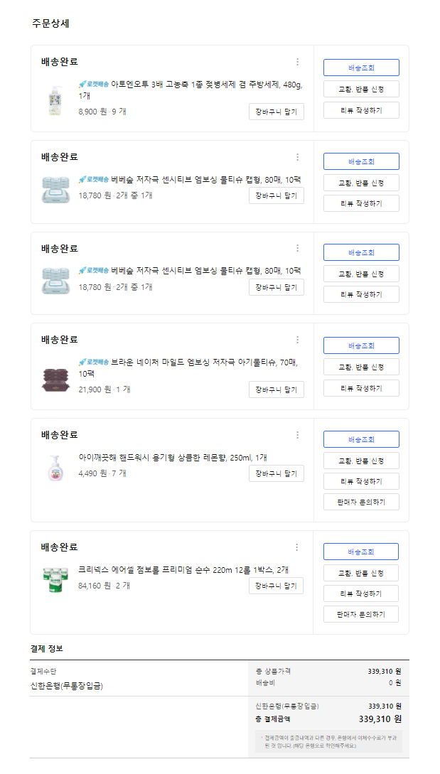 그 중에서도 필수 물품으로 휴지, 물티슈, 세제가 포함되어 있습니다.