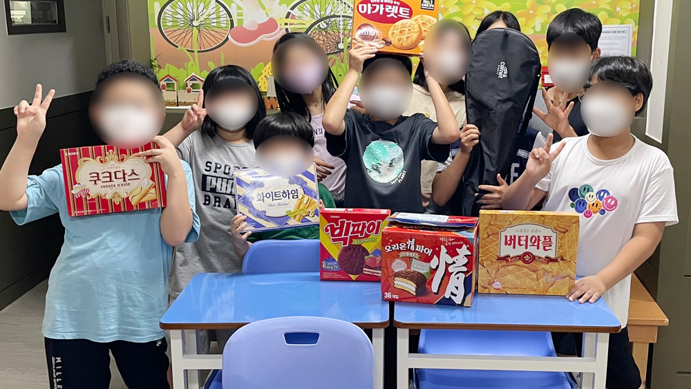또한, 현재 여름방학 기간 중에 아동들과 함께 나누어먹을 수 있는 맛있는 간식들이 함께 배달되어 좋았습니다. 아이들과 맛있는 과자를 나누어먹으며 즐거운 시간을 보내고자 합니다.